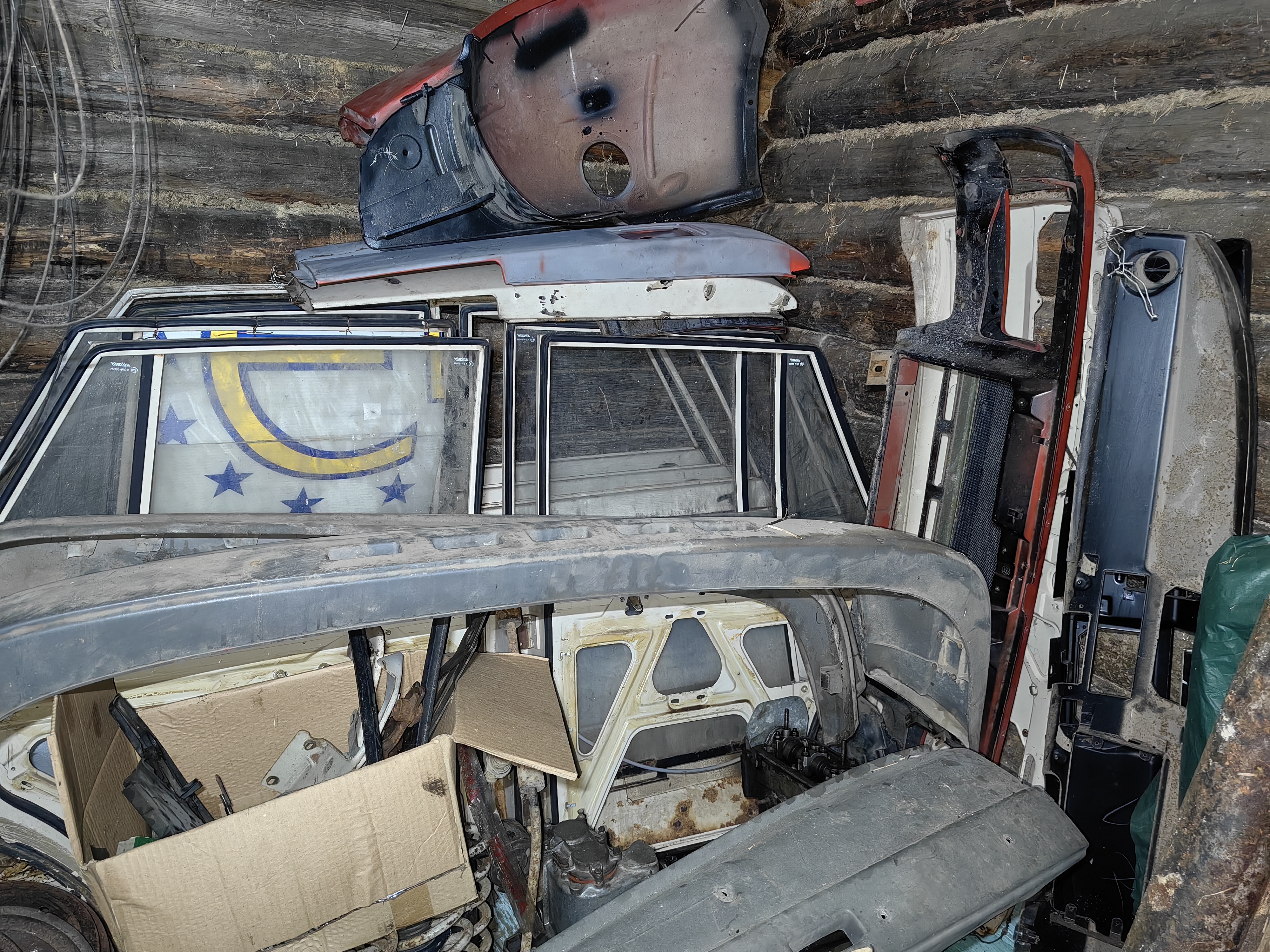 У одного кузов в целом живой, требует сварки по днища в багажнике и пару дыр под ногами пассажиров сзади. Задние крылья гнилые, передние - по кромками бахрома. Морда в жуках, но без сквозняков. Двери так себе. Капот и крыша хорошие. Крышка багажника с трещинами возле петель. Стекла и оптика все целые. Мотор и кпп живые. Салон сносный, практически без дыр.